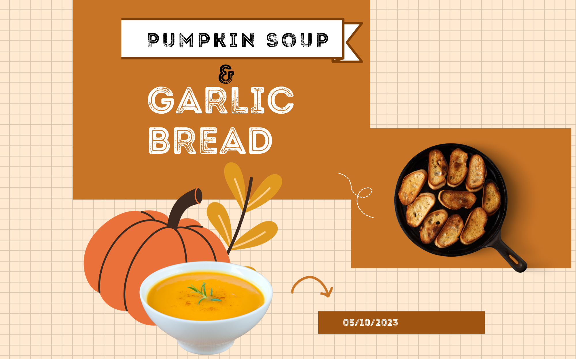 Special Breakkie- Pumpkin Soup& Garlic Bread